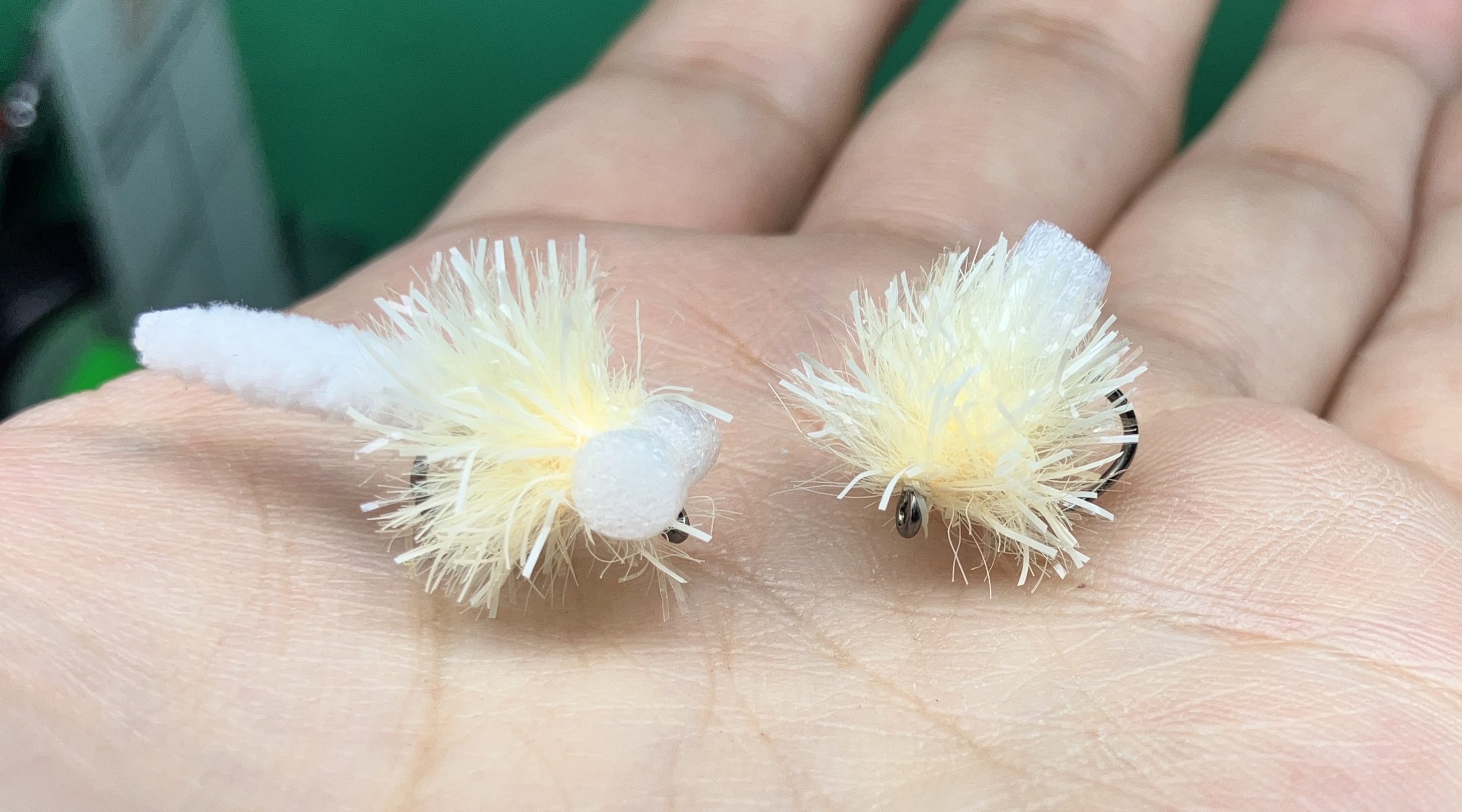 表層からのフォールやボトムバンプなど、安定して釣り続けるために最重要なビーズヘッドアトラクターフライやブロブ(丸物)。
