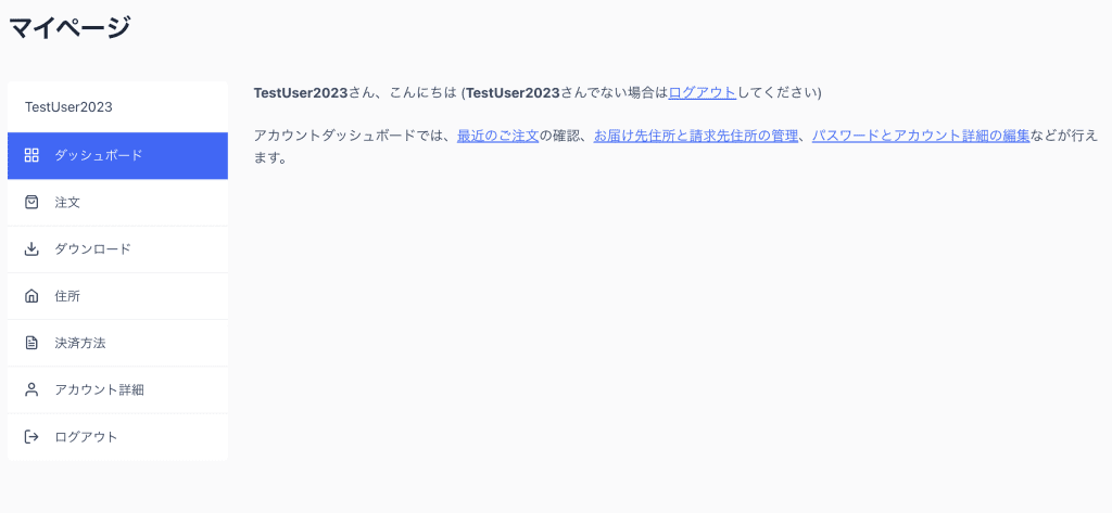 ログインが問題なくできた場合は下記のページが表示されます。