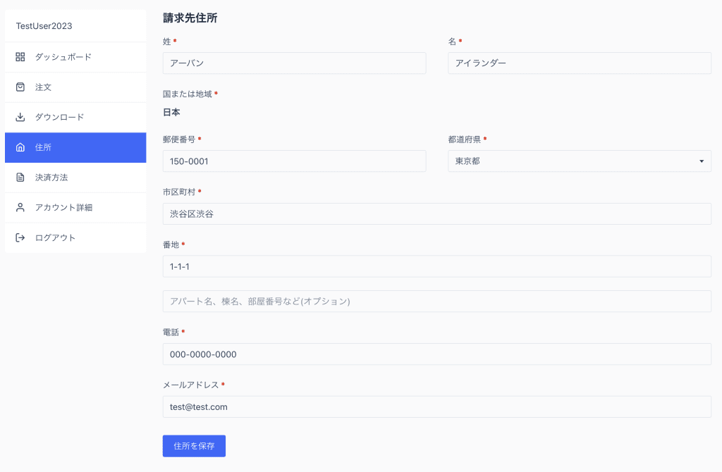 必要事項を入力したら「住所を保存する」をクリックすると完了です。