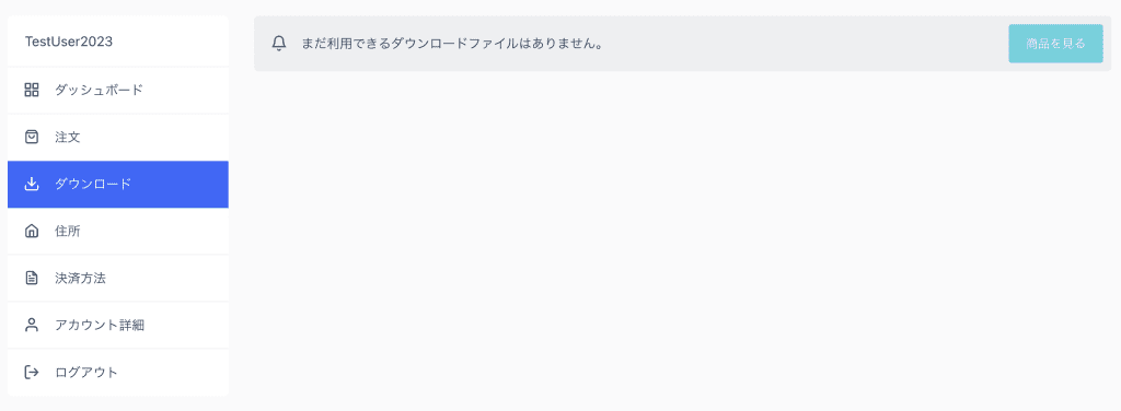 「ダウンロード」をクリックすると、ダウンロード商品画面が表示されます。ダウンロードいただけるコンテンツ(電子書籍や有料ビデオ、月額会員のキーワードや予約物件のパスワードなど)はこちらの画面より再度ダウンロードいただけます。コンテンツによっては有効期限が設定されていますのでご注意ください。