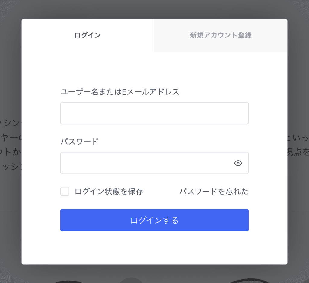 下記のポップアップが開きます。すでにアカウントをご登録の方はこちらからログインしてください。未登録の場合は「新規アカウント登録」をクリックしてください。