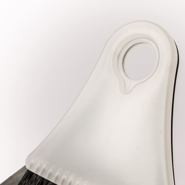 ホウキはブラシ部分はゴミを書き出しやすいプラスチックのハードブラシ、ボディ部分は弾力のあるポリメックスですので、スナップ感良くブラッシングしながらゴミをかき集めやすくなっています。