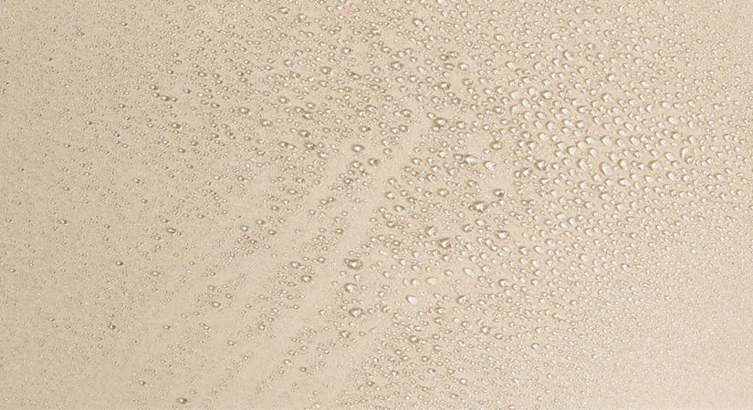 独自のポリコットン「AirTech」により、コットンの通気性・透湿性を活かして、暑い日には中の熱を逃がし、寒い日には中の熱を保つ働きをします。雨の時は、まず外側のコーティングが雨粒を弾き、さらに強い雨になると吸水した繊維が膨らみ水の侵入を防ぎます。紫外線にも強く、手入れを行うことで何年もお使いいただけます。