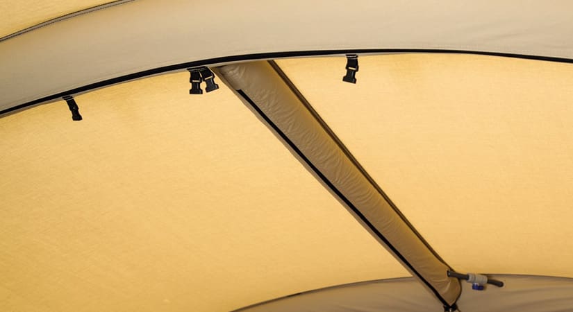 インナーテントは何カ所かに分かれたハンギングポイントでシェルへと連結されています。インナーを取り外して、シェルだけを活用することもできます。
