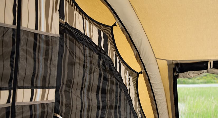ベッドルーム全面は、Outwell伝統のシックなストライプデザイン。