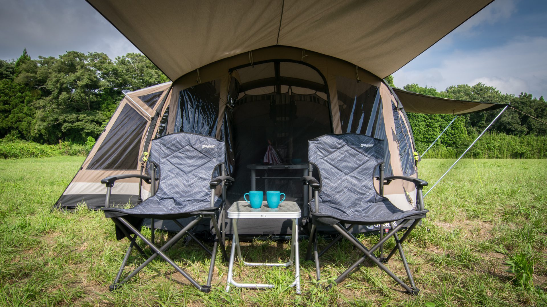 ベッドルーム全面は、Outwell伝統のシックなストライプデザイン。