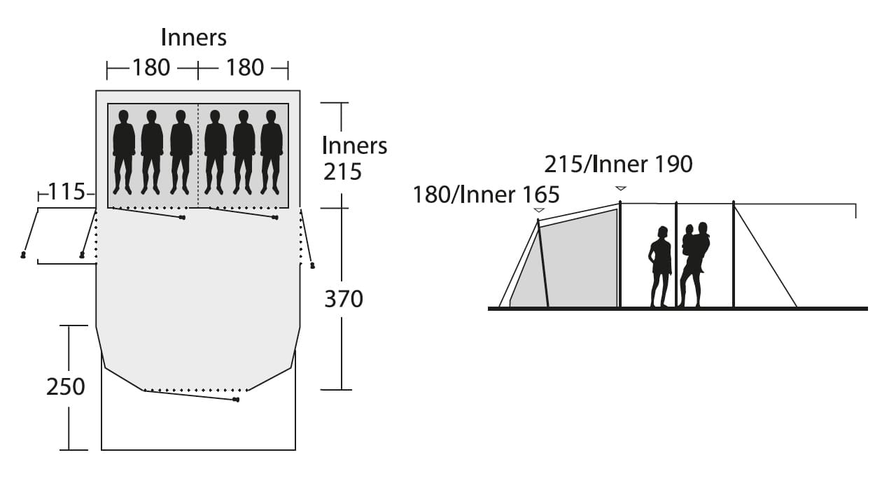 Concorde 5SATCと全く同じデザインで設計された、6人用エアインフレータブルテント。Montana 6SATCでは、両方のベッドルームが180cm幅となるだけでなく、リビングルームも370 x 360cmとさらに余裕のスペースが広がります。