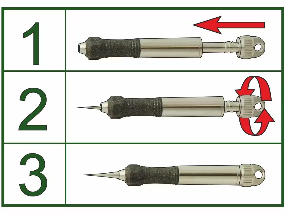 ③そのまま回転させると最長13mmのダブルテーパーニードルとしてお使いいただけます