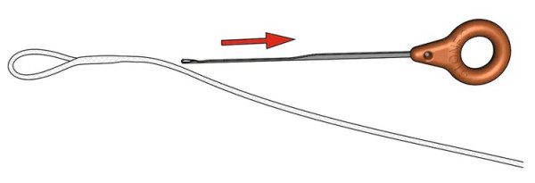 - 可動フック部分を閉じておいてブレイドの中を通したり、結び目や狭い穴を通しておいてから