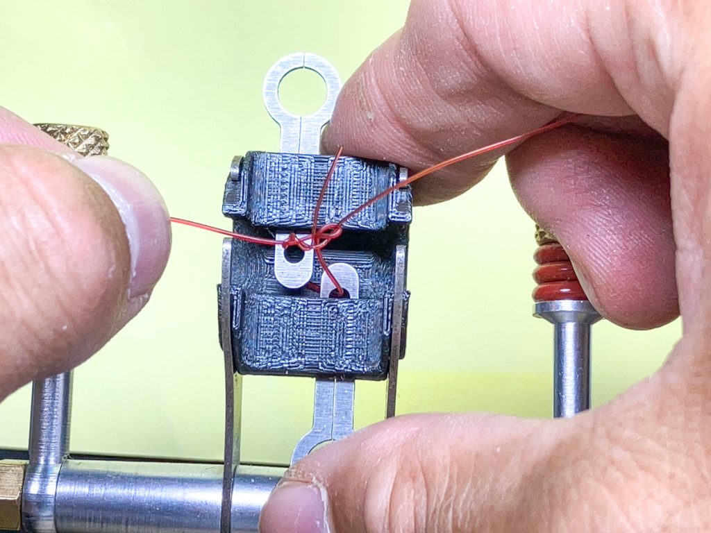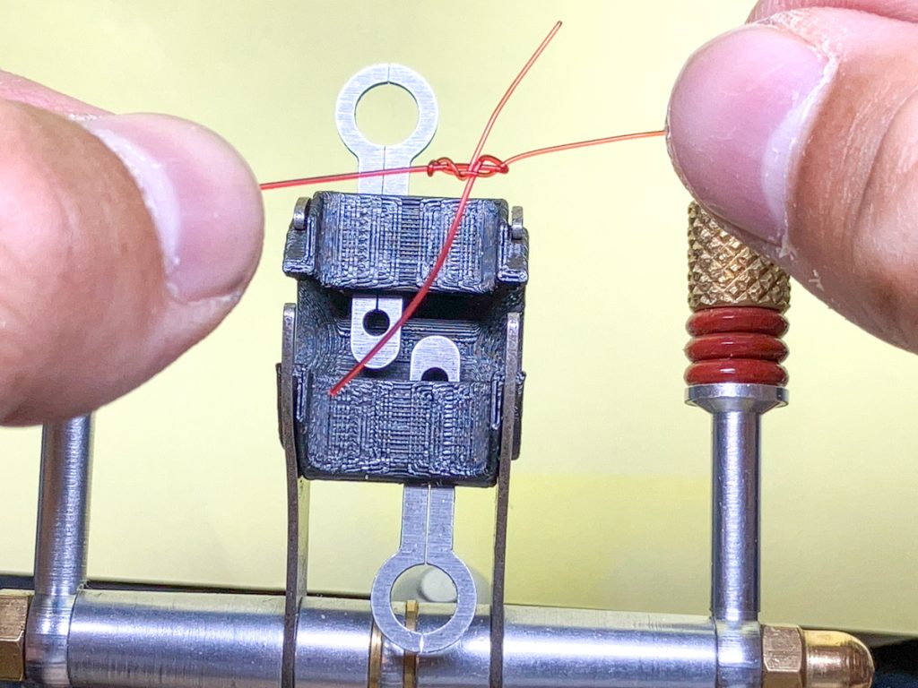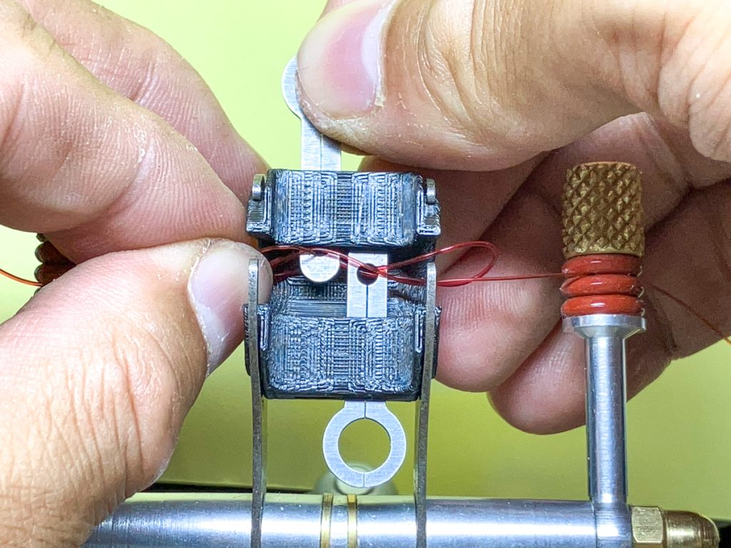 回転ヘッドをラインの直径に応じて3〜5回回転させてライン同士を撚り合わせます。