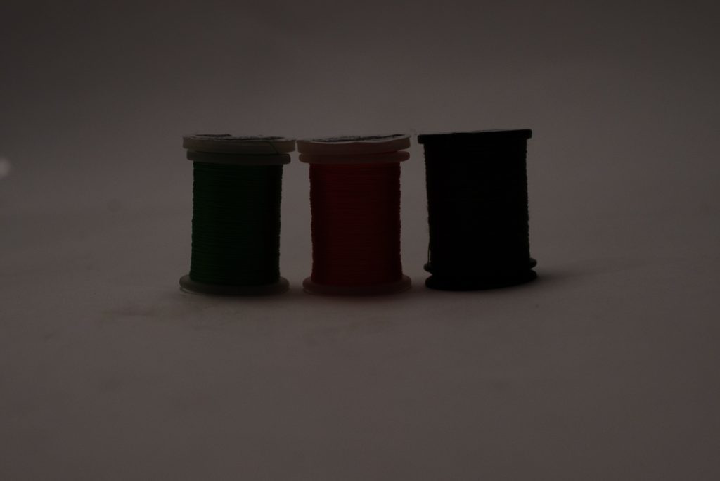 400デニールの細いフロスはテンションをかけることで薄く巻くことができるので、厚みを出さずに小さめのウェットフライやキャッツキルドライフライからサーモンフライまですっきりと仕上げることができます。またホワイトのフロスは明るい色の透けるボディの下巻きに、ブラックのフロスは暗い色の透けるボディの下巻きに必須です。