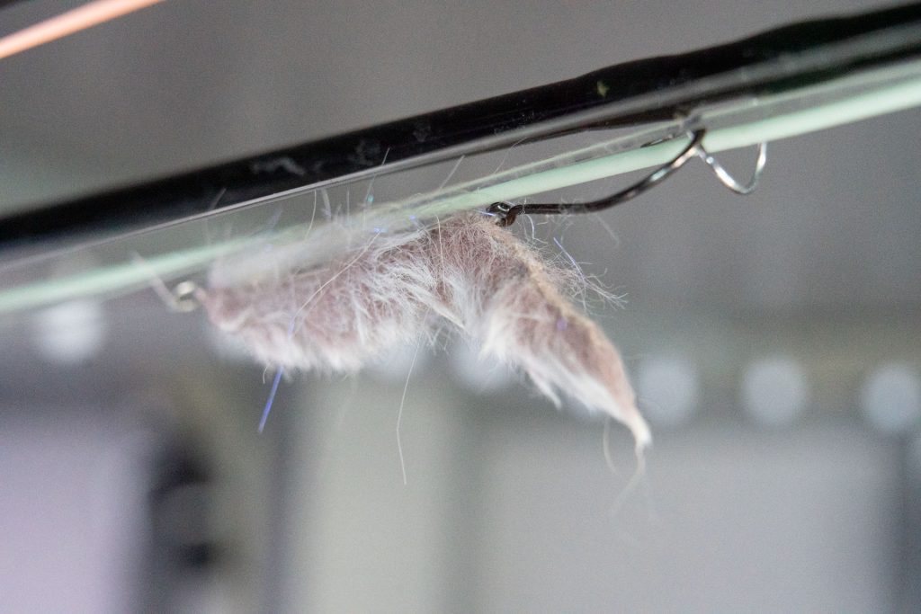 ラビット?いいえ、これはワビット。フェイク・ラビットファーを水中での動きや発色を考えて独自に特注されたマテリアルです。